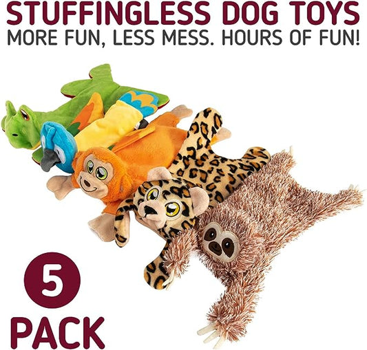Leashboss Unstuffed Crinkle and Squeaky Jungle Animal Dog Toys- 5 pack