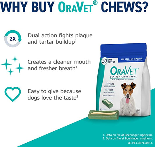 ORAVET Dental Chews for Dogs, Oral Care and Hygiene Chews (Small Dogs, 10-24 lbs.) 30 Count