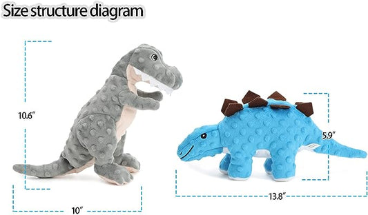 Stuffed Dinosaur Durable Plush Squeaky & Crinkle Paper Dog Toy
