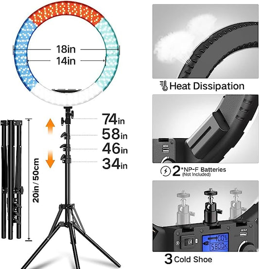 Ring Light with Stand and Remote Controller,19" Light Ring with Softbox Diffuser