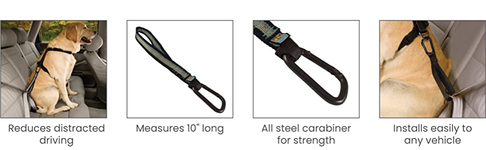 - Ensure Safety While Driving - The 10" dog seat belt tether eliminates distracted driving and prevents your dog from dog leaping forward into the front seat